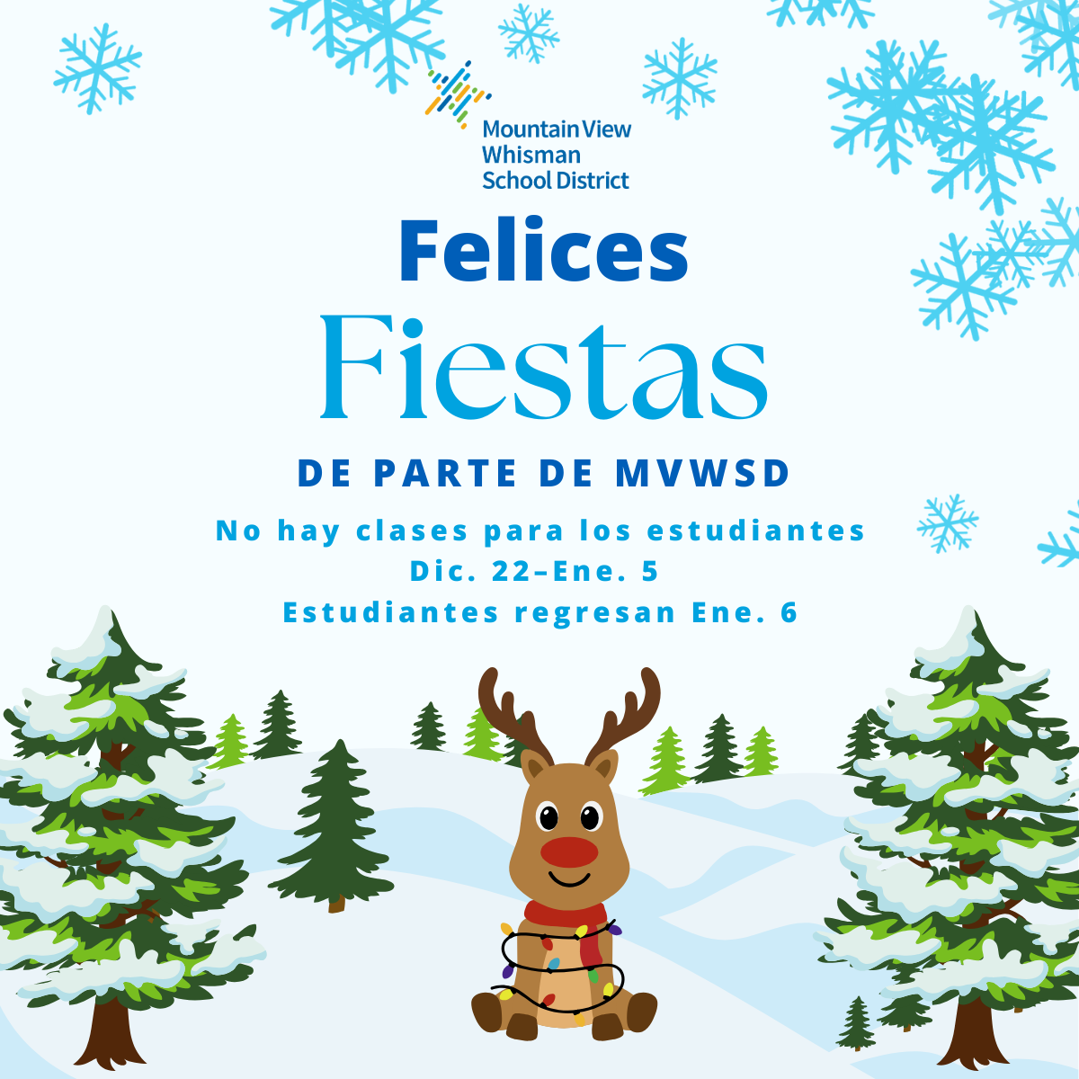 Ahora que concluimos la primera mitad del año escolar (¡ya!), quiero agradecer a nuestros estudiantes, personal y familias por el cuidado, resiliencia y compañerismo que traen a nuestras escuelas cada día. Este ha sido un estrecho de aprendizaje ocupado y significativo y estoy profundamente agradecido por la dedicación de nuestro personal y el apoyo de nuestra comunidad. Espero que las vacaciones le den tiempo para descansar y reconectar. ¡Les deseo a usted y a sus seres queridos unas vacaciones de paz y regeneradoras!